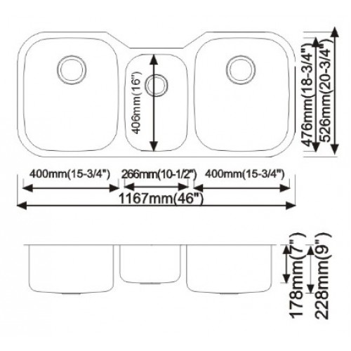 Triple Bowls stainless steel sink with cUPC CSA.